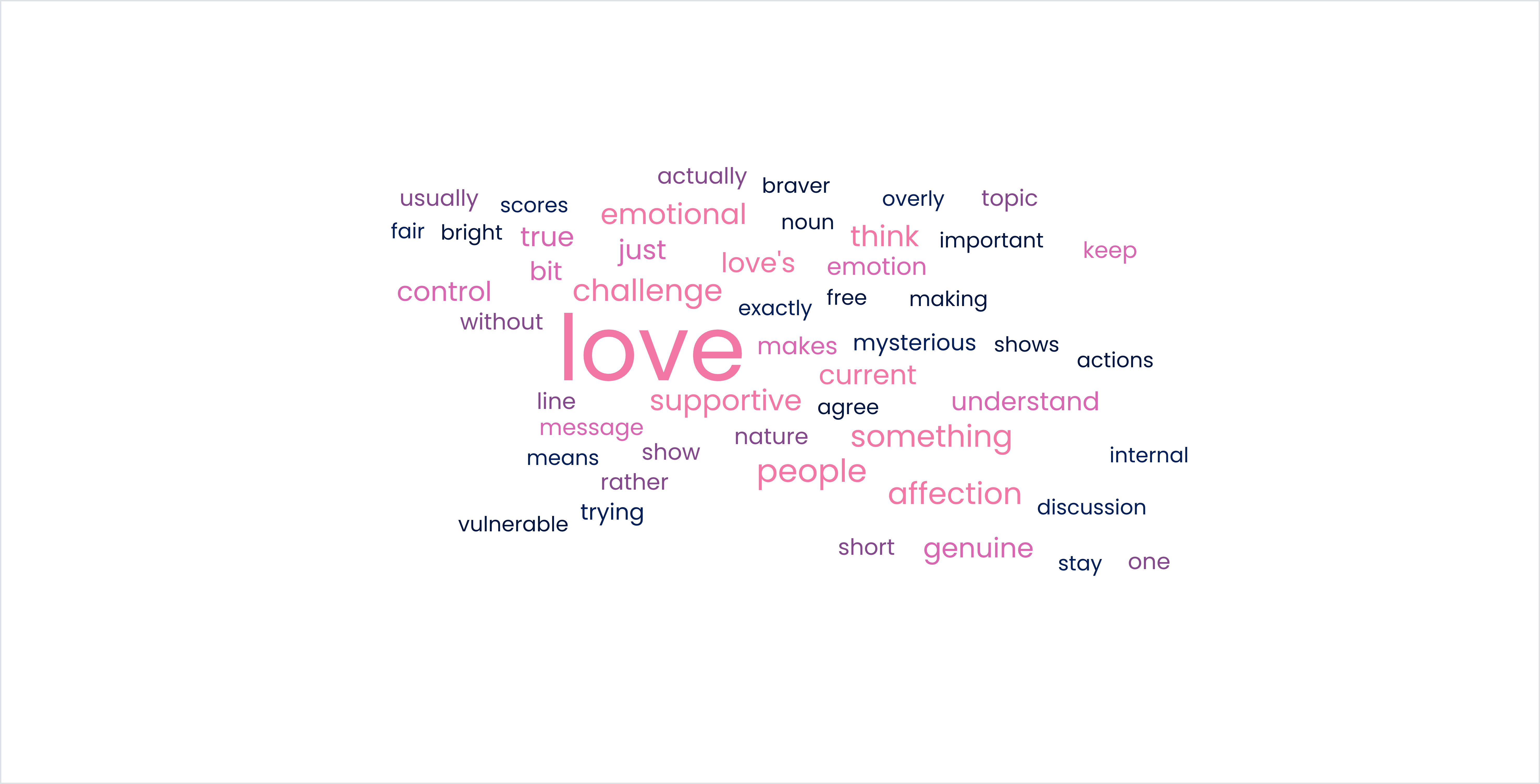 | 2 | I agree, and I think love itself is something within our hearts, while the way it is expressed in practice is more about how the people we love actually feel. Both aspects are equally important | Support: Distinction between feeling and expression shows insight. Challenge: Separating essence from actions may excuse claiming love without showing it. |