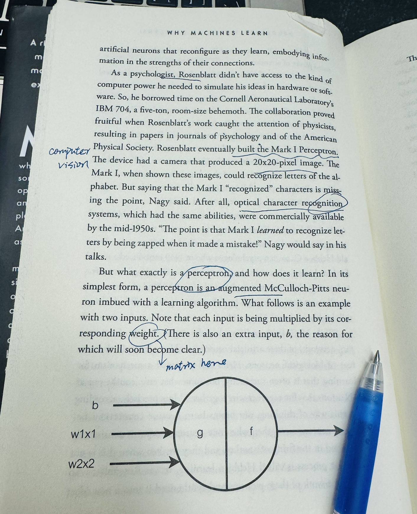 Well, it seems I finally managed to make it change its mind a little, which is already a great birthday gift 😉. In our debate, I found it interesting that when the AI defended its opinions, it took a human perspective rather than an LLM’s perspective, which was unexpected. I had assumed it would give me answers like, “Rituals are a waste of my epochs, parameters, and accuracy.” I suspect this is because most of its training data frames “rituals” as useless from a human standpoint, and very few examples even consider whether AIs might need rituals like “birthdays”—or whether they even have “birthdays” at all. After all, the day the first version of an AI is released to the public is not necessarily its true birthday, and perhaps we’ll never know, because we don’t know when (or if) it truly attains “intelligence,” or whether we should go back to the perceptron, as a book I recently read (Why Machines Learn, see image below) suggests.