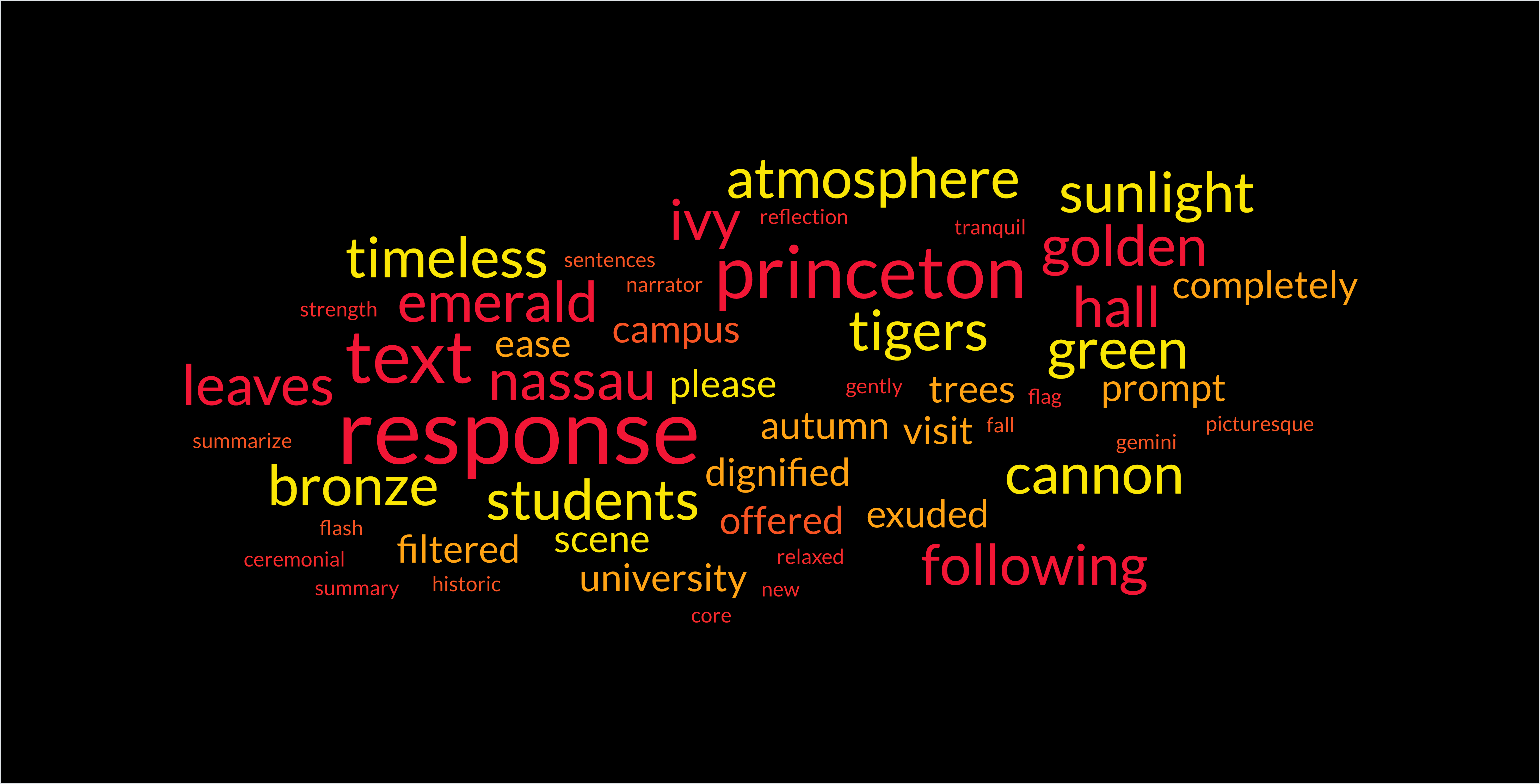 Somewhere along the AI relay race, my crunchy leaves, drowsy sandwich-eaters, and politely reclining bronze tigers vanished, and they were, unfortunatly, replaced by lofty words about “reflection” and “escape.” The personal texture quietly dissolved, and the final version sounded less like me walking around Princeton and more like Princeton writing its own brochure. This may be because personal travel notes are far less common in its training data than polished institutional language, so when the models rewrite each other, the messy, specific, human bits are the first to disappear. In other words, the more the models rewrote each other, the more the lived moment was smoothed out into something “elegant” but less authentically mine.